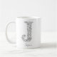 Taza De Café Monograma Floral Frasco Blanco Negro Letra J