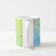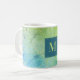 Esta taza de café ofrece un diseño elegante en verde azulado y verde y se acentúa con líneas geométricas de purpurina falso verde claro. Una caja verde azulada oscura, en el centro, ofrece un monograma personalizado.