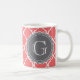 Taza De Café Monograma gris del patrón de entramado marroquí de