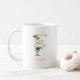 Taza De Café Monograma Letra F en Dorado | Floral Rosa Blanco V