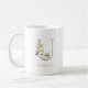 Taza De Café Monograma Letra U en Oro | Floral Rosa Blanco Verd