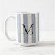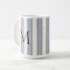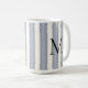 Una taza personalizada con un audaz monograma negro sobre rayas verticales de pizarra gris y blanco roto, este diseño se ha visto muy bien con una decoración contemporánea y de estilo vintage.