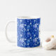 Taza De Café Monograma, patrón de hojas tropicales azul cobalto
