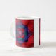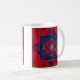 Cuatro colores diferentes se complementan entre sí en este diseño de tejido con un monograma amarillo en el centro.