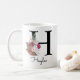 Taza De Café Monograma Rosa Boho Femenino Floral Inicial H