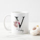 Taza De Café Monograma Rosa Boho Floral Inicial V