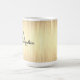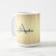 En esta elegante taza se encuentra un gradiente de piel dorado metálico cepillado como telón de fondo con una letra monograma de oro y un nombre que aparece en la parte delantera de la letra donde se puede personalizar para hacerla única propia. Típicas y elegantes vibraciones.