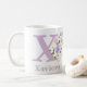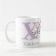 Mug de regalo de Xaviera. Delicioso diseño floral de color pastel con monograma y nombre del receptor. Inicial es la letra X. Ejemplo muestra Xaviera.