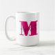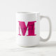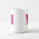 Elegante taza de café muestra tu nombre en negro sobre un monograma de letras iniciales en color rosa caliente. COINCIDIENDO elementos de nuestra colección.
