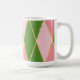 Elegante Mug Monogramado - Argyle rosa y verde con acentos dorados Sip tu bebida favorita con estilo con esta elegante taza monocroma, con un diseño de argyle rosa y verde de moda con lujosos acentos dorados. Personalizable y diseñado para adaptarse a tu gusto personal, esta taza añade un toque sofisticado a tu ritual matutino de café o té. Ya sea en casa o en la oficina, este elegante tazón de cerámica destaca por su diseño elegante, colores llamativos y una opción de monograma personalizada. La cerámica de alta calidad garantiza durabilidad y una cómoda experiencia de beber, mientras que los colores vivos lo convierten en una adición perfecta a la cocina o al escritorio. Personalice el monograma con sus iniciales y disfrute de una experiencia de bebida verdaderamente única. El emblema de la hoja de oro es opcional, lo que le permite personalizar la taza a su gusto. Ideal para regalar o añadir un toque personal a su rutina diaria, esta taza es a la vez funcional y de moda, perfecta para aquellos que aprecian una mezcla de diseño clásico con personalización moderna. Monograma de personalizable para un toque personal Patrón elegante rosa y verde con impactantes acentos dorados Construcción de cerámica duradera, disponible en múltiples tamaños Diseño opcional de hoja de oro para mayor sofisticación Perfecto regalo para personas elegantes, miembros de sororidad, o uso personal Caja fuerte de microondas y lavavajillas para comodidad Esta taza está diseñada para personas que disfrutan de una bebida personalizada y elegante. Perfecto para miembros de la hermandad, profesionales o cualquier persona que quiera añadir un toque de elegancia a su rutina diaria. Ideal como regalo para amigos, compañeros de trabajo o seres queridos que aprecian los accesorios de moda para su hogar.