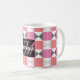 El clásico retro de la vintage inspira el arte moderno, este patrón de cuadrados geométricos rosa y negro se inspira en la época vintage y en el estilo de chekerboard, con un toque geométrico abstracto en un patrón estético para formar un elegante y elegante patrón decorativo compuesto por cuadrados geométricos y líneas en rosa y negro para dar un elegante y elegante patrón unisco. Este tazón de café puede fácilmente ser editable, y le permite personalizado sus iniciales de monograma y su nombre usando una caligrafía de escritura elegante rosa, y una tipografía negrita retro blanca dentro de un cuadrado geométrico. Este diseño es para el mejor regalo de cumpleaños y vacaciones únicas presentes para navidades y festivos vacaciones de invierno de temporada.