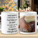 Honra a tu mejor amigo con una taza conmemorativa de caballos personalizada. Este singular tazón de café de caballo de recuerdo es el regalo perfecto para usted, familia o amigos para rendir homenaje a su ser querido. Esperamos que su monumento a los caballos les traiga paz, alegría y recuerdos felices. Cita: "Cuando mañana empiece sin mí, no creo que estemos muy separados, por muy tiempo piensas en mí, estoy aquí dentro de tu corazón". Personaliza con foto y nombre. Mug es doble cara, una cita lateral, otra foto lateral y nombre. DERECHOS RESERVADOS © 2020 Judy Burrows, Black Dog Art - Todos los derechos reservados. Personalizado Foto Equine Keepsake Horse Memorial Café Mug