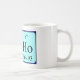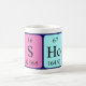 Se muestra como S Ho (Holmio de azufre) en una taza para el científico que tienes.