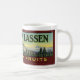 Fantástica marca de fruta vintage California Mt Lassen reutilizada en una taza de café para usted!