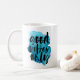 Consigue tu motivación con esta taza de personalizado que incluye el guión de pincel personalizado "sólo buenas vibraciones" sobre un pincel acuarela fondo azul profundo
