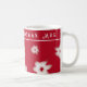 Una taza de Navidad personalizada, con poinsettias blancas y fondo rojo Halleberry. Es a la vez divertido y elegante, y hace un regalo práctico.