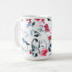 Un patrón floral delicado, pintado a mano, reventando con energía juguetona, con flores rojas vibrantes, hojas azules suaves y elegantes tallos grises bailando a través de un fondo blanco y fresco. Perfecto para tejidos, papel pintado, papelería o diseños digitales que necesitan un toque de encanto artístico y primaveral.