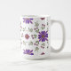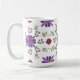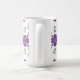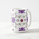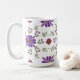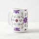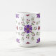 Sienta tu cerveza favorita con estilo con esta vibrante taza floral. ¡Ideal para refrescar tu rutina matutina! Este caprichoso arte folclórico se envuelve alrededor de la taza y presenta flores moradas y rojas con acentos dorados y hojas verdes frescas contra el fondo blanco de la taza.