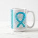 La Hernia Diafragmática Congénita (CDH) utiliza una cinta de color turquesa azul para mostrar su apoyo a la conciencia sobre esta condición. Esta taza personalizada presenta pinturas de arte de ángel de la guarda con cinta de conciencia de color turquesa azul con el mensaje "¡Espero y apoyo la conciencia sobre CDH!". Las tazas o tazas de café con arte de cinta de ángel de la guarda de conciencia turquesa azul personalizadas se pueden personalizar con mensajes personalizados para hacer tazas geniales para recaudación de fondos de conciencia, regalos de taza de conciencia o otros eventos especiales u ocasiones de apoyo a la causa. ¡Crea tus propias palabras personalizadas para un mensaje personal de esperanza y apoyo para compartir!