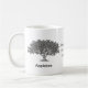 Dos robles con nombres familiares debajo (personaliza con tus nombres familiares). Entre los árboles está el texto "Soy una bellota que cayó de estos árboles"
