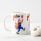 Un tazón blanco de buena calidad con un diseño de papel pintado a mano de un payaso alegre con globos y una estrella giratoria. Vea también la tarjeta de felicitación, regalos y prendas de vestir. Lavavajillas y caja fuerte con microondas disponibles en dos tamaños.