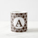 Este elegante tazón de café monogramado está decorado con un elegante patrón marrón chocolate. Personalice esta taza cambiando la letra del monograma. El diseño es de arte original.