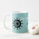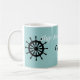 Para el marinero: Personaliza con el nombre del barco/barco arriba. Imagen de timón y ancla en ambos lados de la palabra "Capitán". Ver "teteras" para diseños coordinados.