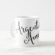 La Argentina Americana Entwada Corazón Mug. Ya sea que tengas ascendencia argentina, o que vengas de Argentina, o quizás tú y tu otra mitad eres estadounidense y argentino! Este es un diseño de tipo de letra guionado, con dos corazones entrelazados con banderas de ambos países, y el texto: Americano Argentino