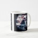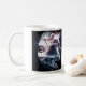 Una pintura digital de una doble exposición de un hombre con espacio exterior. Mug clásico, 11 oz