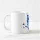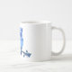 Mug tiene un diseño monocromático azul de un búho en una rama con hojas.