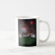 Un pequeño robot rojo vuela su balón mientras las explosiones atómicas estallan a la distancia.