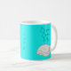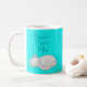 Mug Gato de dormir personalizado sobre fondo turquesa con diseño original de la artista e ilustradora Sandra Moore. ¡Un regalo ideal para todo aquel que ame los gatos y una taza especial para dormir! La información sobre el trabajo de Sandra Moore puede consultarse en www.sandramoore.co.uk