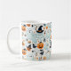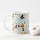Una taza festiva de Halloween con un patrón juguetón de lámparas jack-o', fantasmas, gorras de brujas, murciélagos y otros símbolos espeluznantes. Perfecto para añadir un toque de diversión y emoción a sus celebraciones de Halloween.