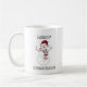 Diseño de vacaciones en rojo y blanco en una taza estupenda para galletas y leche! Alegre muñeco de nieve con sombrero de Santa y texto de "¡Feliz Navidad!".