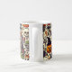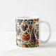 Una encantadora taza de patrón de Halloween con adorables brujas, calabazas y murciélagos.