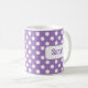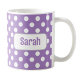 ¡Un personalizado de puntas de polka púrpura personalizado impreso con tu nombre! Está diseñado con un patrón de puntos de polka blancos sobre un color de fondo morado que rodea la taza. Tu nombre, cuando se personaliza, se imprime a ambos lados de la taza sobre el patrón de puntos de polka morado. Es un gran regalo para cualquiera que ame los patrones de puntos de polka y el color púrpura.