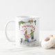 Mugre blanca con niños escribiendo mensajes de aprecio por su papá en una pared. Dos gatos mirando.
