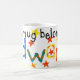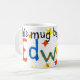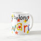 La taza blanca con la inscripción 'Esta taza pertenece a Edward' en letras coloridas hechas de un collage de papel pintado a mano.