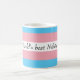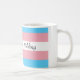 Descripción de la imagen [ Una taza parcialmente blanca, con la bandera transexual envuelta en rosa, blanco y azul. Las palabras 'El mejor nibling del mundo' están escritas con tinta negra en la franja blanca en medio de la bandera']