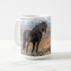 El semental negro, Mesquite, se detiene por encima de la colorida sección de puntos rojos de McCullough Peaks HMA.