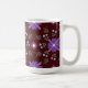 Comience el día con una dosis de encantadora maravilla floral. Esta taza cuenta con una deliciosa variedad de flores moradas sobre un rico fondo rojo. Perfecto para el café matutino o el té de la tarde.