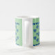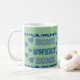 Un tazón de café de estilo rural con "Hogar dulce hogar" y corazones en el patrón de mezcla de puntos y azul de Gingham en un fondo verde claro que puede cambiar fácilmente, si lo desea, usando el botón Personalizar y el botón Editar.