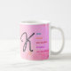 Esta taza será la favorita para todos, desde tu dulce abuela hasta tu hermana adolescente. Con el mensaje correcto, una taza puede convertirse en la más atesorada compañera de cualquiera en los próximos años. Este diseño presenta una hermosa letra a mano "K" en cursiva negra sobre un impresionante fondo acuático. El lado izquierdo muestra un gradiente cálido de amarillo a rosa, mientras que el lado derecho muestra un gradiente suave de rosa a amarillo. Alrededor de la carta hay palabras vibrantes de varios colores, incluyendo azul, naranja, rojo, morado y rosado, destacando rasgos positivos empezando con la letra "K". El efecto general es un diseño visualmente atractivo y edificante que celebra la belleza de la letra "K" y sus cualidades asociadas. El fondo acuático añade un toque de elegancia y sofisticación, haciendo que este diseño sea perfecto para propósitos inspiradores o motivacionales. Dimensiones: 11 onzas: 3,2" D x 3,8" H Microondas y lavavajillas caja fuerte, construcción de cerámica cumple con los requisitos de la FDA para la seguridad de los alimentos y bebidas Impresa a petición en Reno, NV
