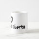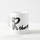 El nombre comienza con la letra "R" (personalizar para el resto del nombre - por defecto Roberto). La letra inicial es una R mayúscula formada por un gato con la pierna trasera tendida hacia afuera y la cola negra curvada hasta el oído.