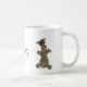 Dragón muñeco a cada lado de la taza. El dragón se crea a partir de hilados en tonos beige y verde. Con gafas, la muñeca parece ser un profesor dando una conferencia. Dragón a cada lado de la taza con nombre personalizado en el centro.