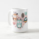 Mug presenta un lindo ilustracion de animales del bosque divertidos contra un suave fondo del corazón rosado.