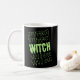 Esta taza es perfecta para ese amante de Halloween. Ambos lados dicen "Bruja" en Halloween colores verde y naranja.