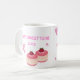 "La taza de cerámica blanca clásica de 11 oz con dos donuts rosados, corazones rosados y 'Feliz Año Nuevo 2025.' ¡Dulce y festivo!"