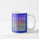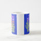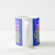 El diseño de la taza de café que dice "Tucson" es azul de color con un mango blanco y una llanta blanca. Es ideal para tomar café o té por la mañana. También hay microondas y lavavajillas.
