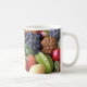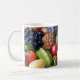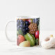 Fotografía de una variedad de deliciosas y coloridas frutas impresas a ambos lados de la taza.
